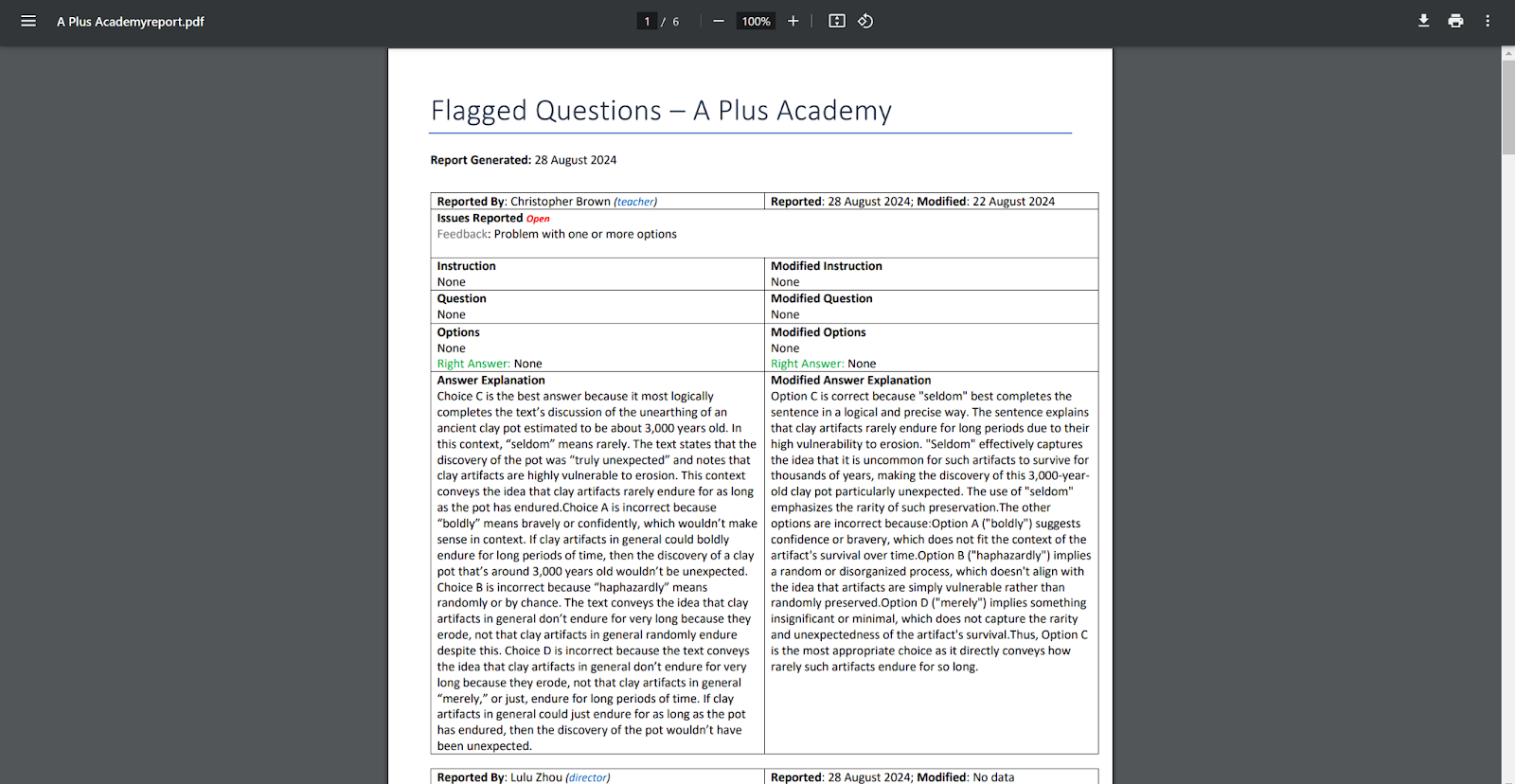 We’ve designed a new weekly summary report for flagged questions in each institute. Every weekend, you’ll receive an email with report outlining the number of flagged issues raised by customers, along with details of the changes and updates made. This ensures that you stay informed about how feedback is being addressed.
