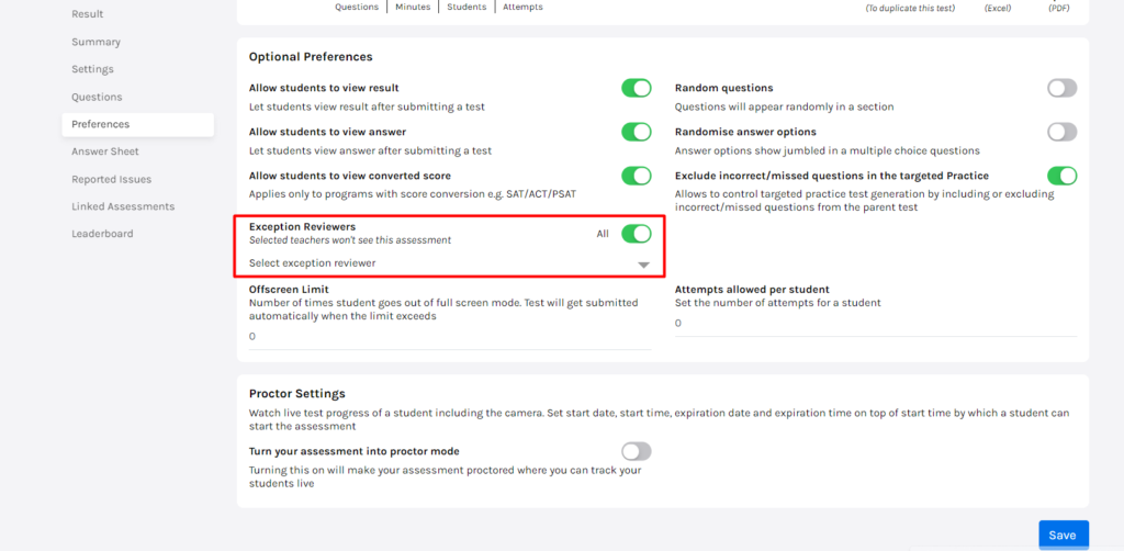 Directors can now add or remove teachers as reviewers from the assessment preference settings. This feature helps manage who can review and edit assessments within the platform, ensuring that only authorized personnel have access to modify assessments.