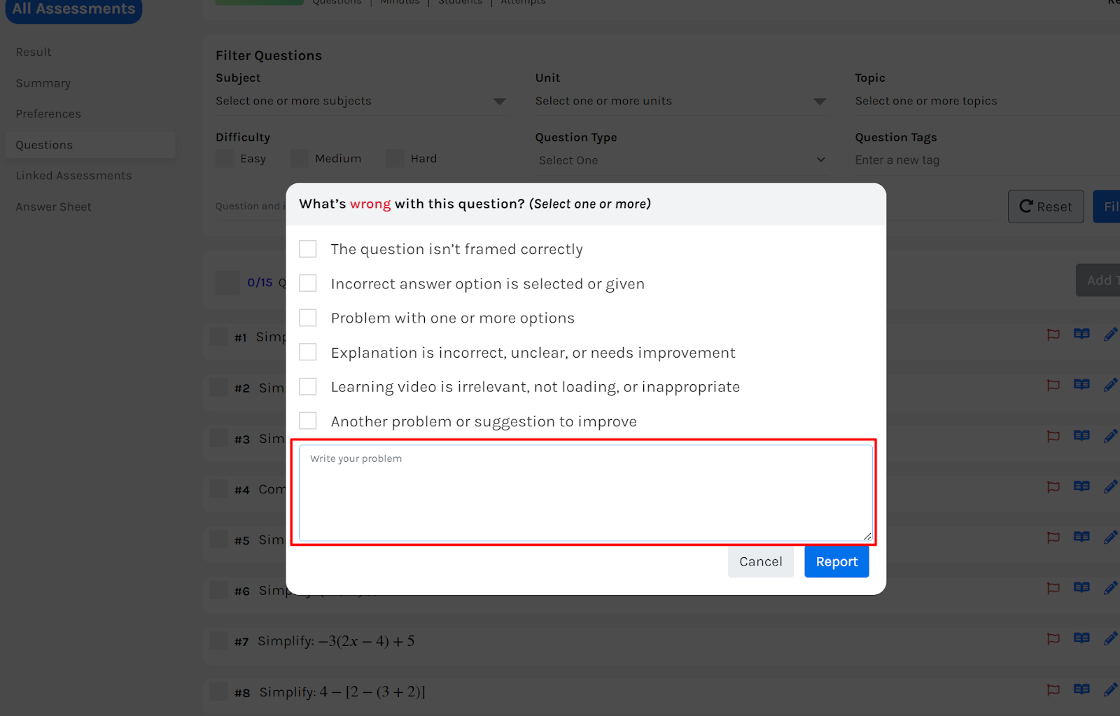 This feature is important because it gives a clear, visual overview of all flagged questions, making it easier for directors, teachers and creators to identify patterns and fix issues more quickly.