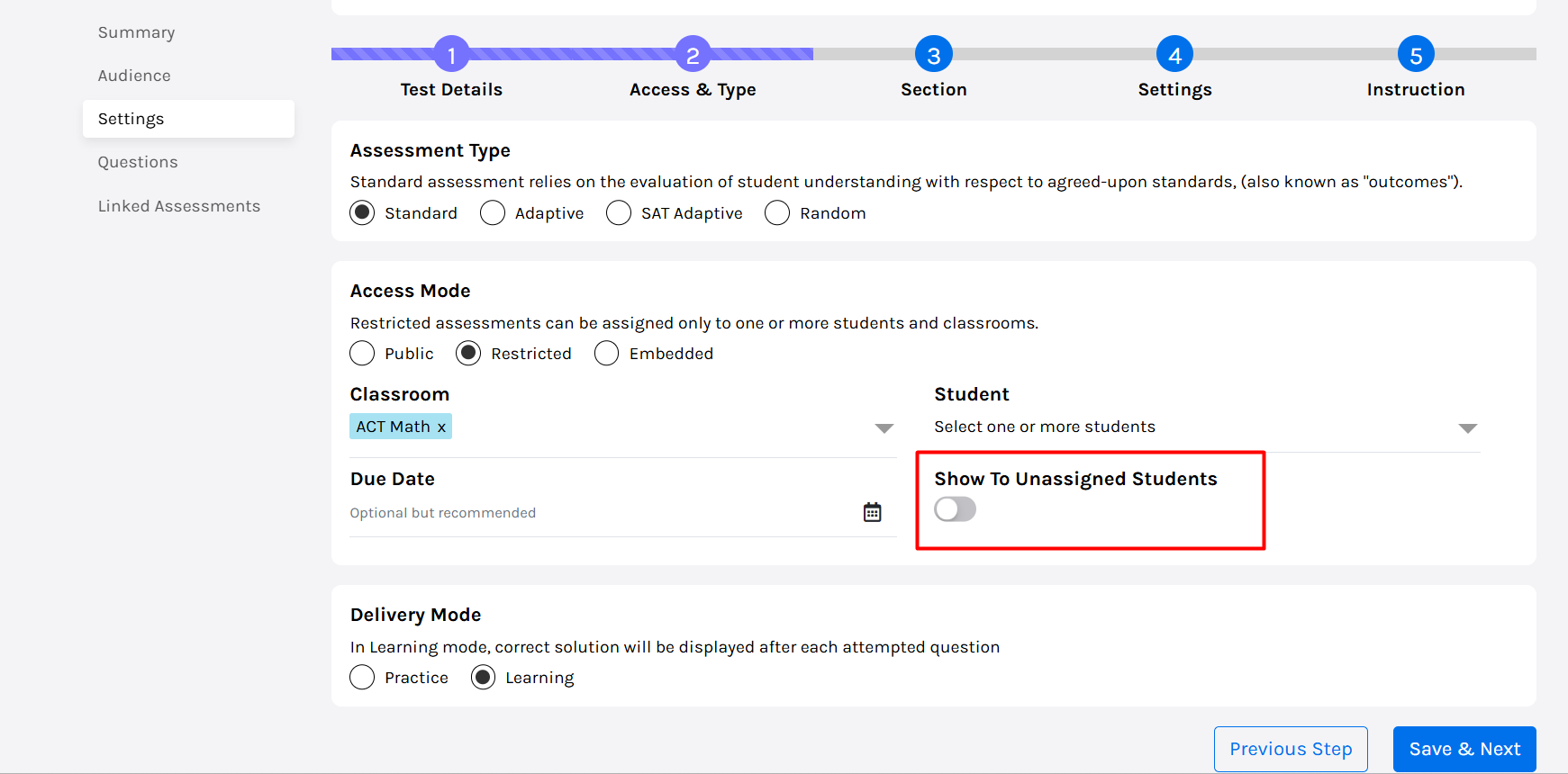 2. Toggle ON “Show to Unassigned Students”