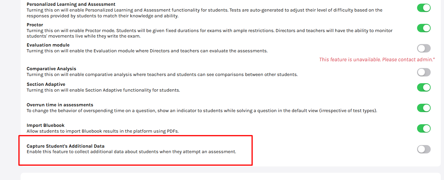 2. Toggle ON “Capture Student’s Additional Data”