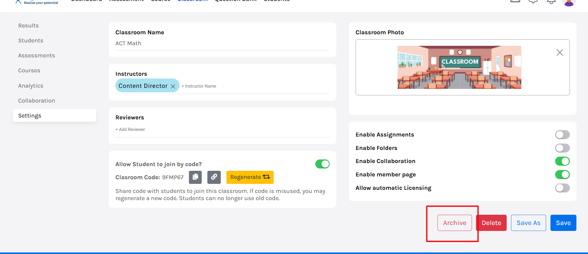 3. Archive Classrooms to Keep Your Dashboard Organized