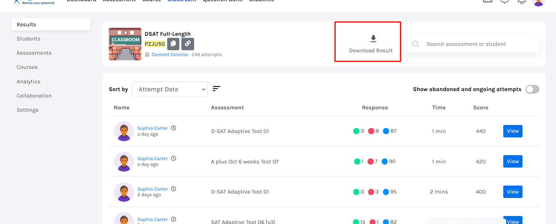 6. Download Student Results Directly from the Classroom
