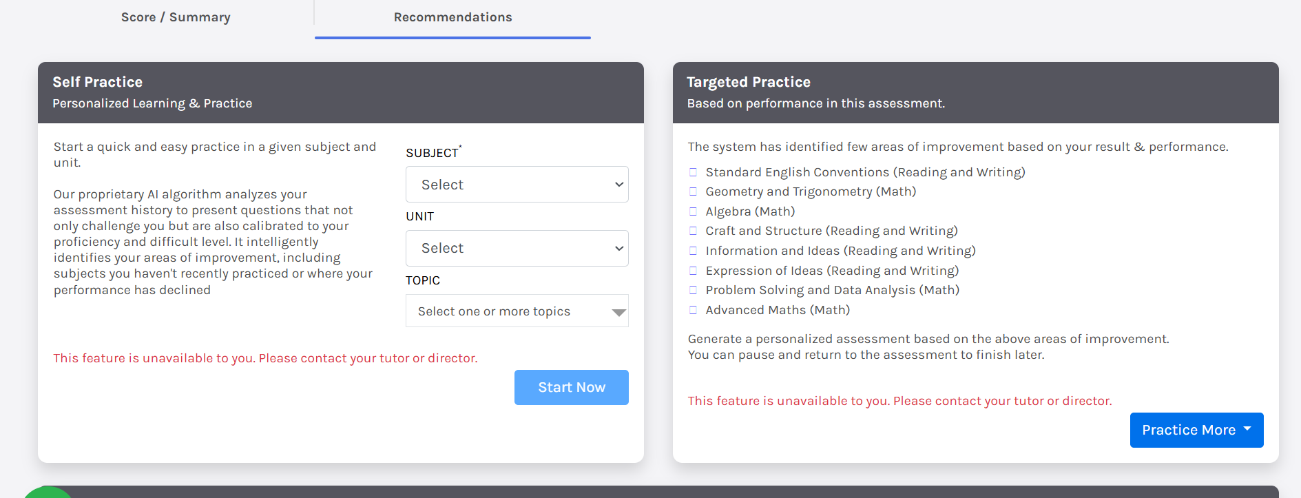 Previously, new students didn’t even know about Targeted Tests because the option was hidden. Now, it will be visible (but disabled), giving students a preview of what they can unlock by upgrading.